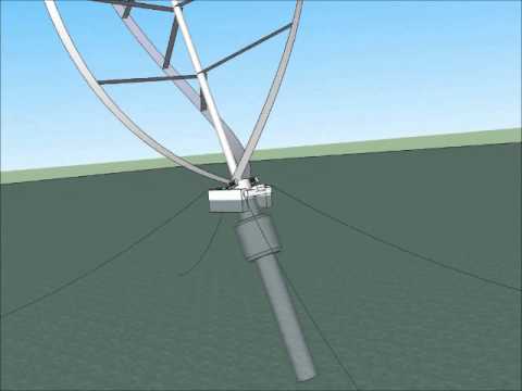 wind turbine about 100 m high floating on the sea 20 km offshore of Fukushima